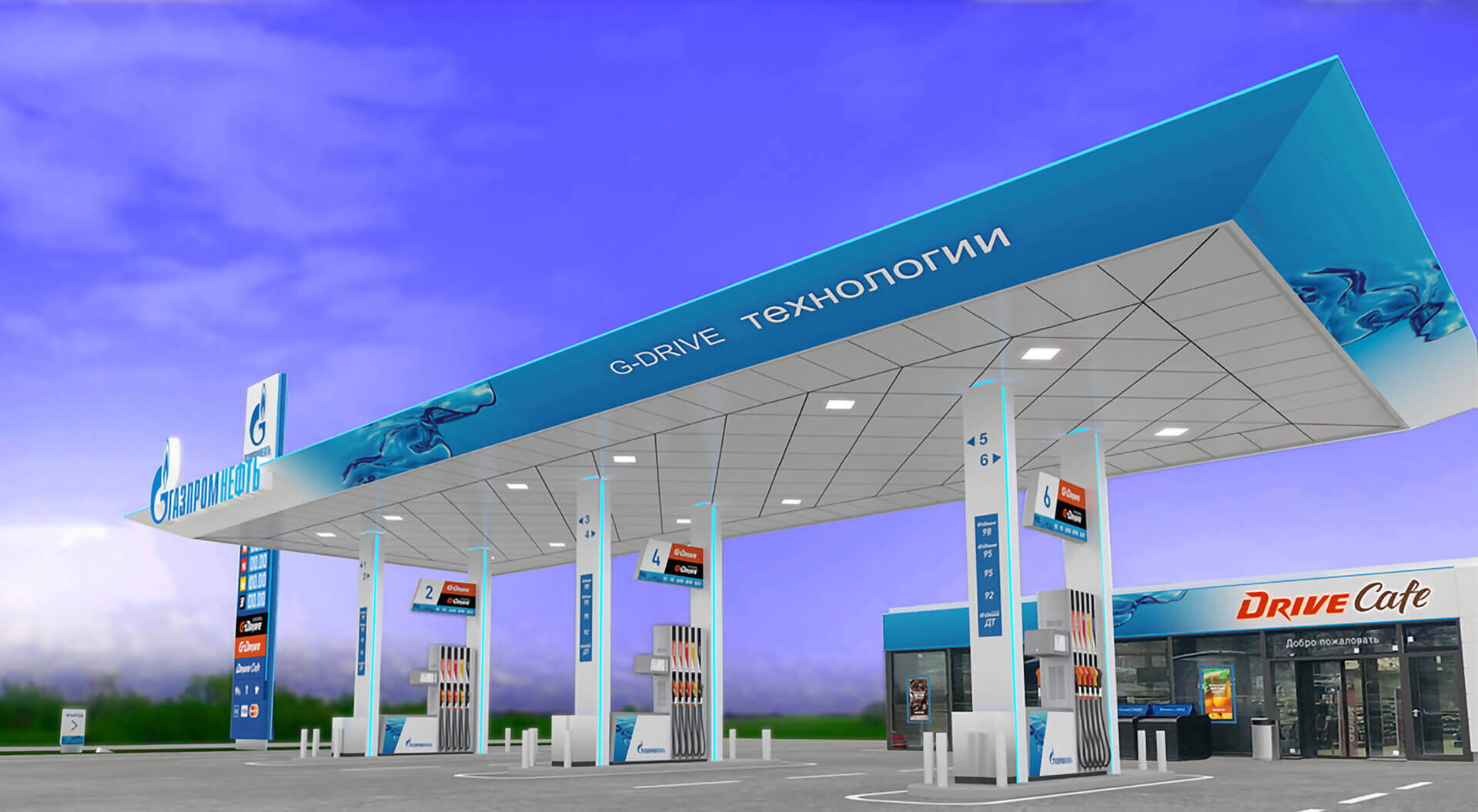 Unser Fokus lag darauf, die Tankstellen von Gazprom Neft als moderne Retail-Destinationen zu positionieren, Orte, die effizientes Tanken, intuitive Kundenwege und überzeugende Convenience-Retail-Erlebnisse bieten.