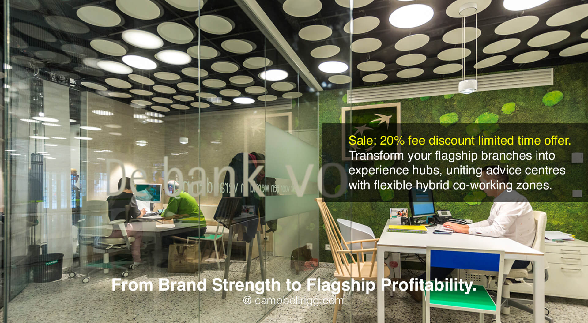 Flagship Bank Design - repositioning branches as experience hubs, advice centres, and hybrid co-working spaces.